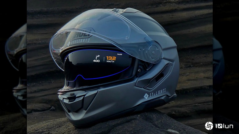 Shoei被广泛认为是顶级摩托头盔制造商之一,拥有众多出色的设计和高安全标准。近期,他们与法国公司EyeLights合作,在头盔内部加入了一点科技元素。这项技术是一种全新的抬头显示(HUD),可以直接在头盔内层护目镜的后方显示骑行数据。