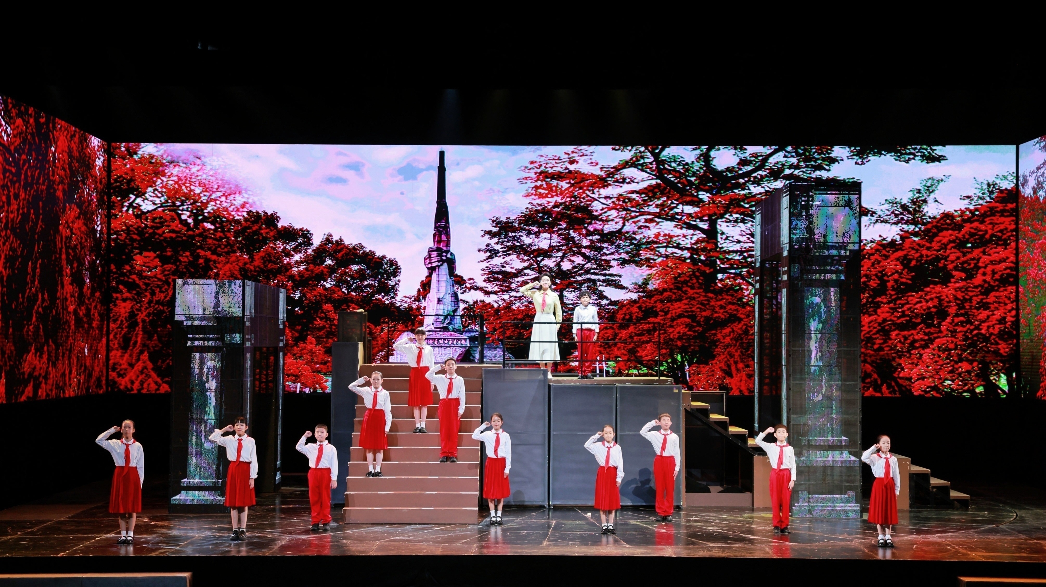 团河源市委相关负责人表示,《先锋少年》的到来,让当地剧院首次有机会搭建直径达14米的旋转舞台,并运用解构主义立体装置布景和多媒体影像等新技术,打造了灵活多变、意蕴丰富的演出空间,让少年儿童身临其境般沉浸在波澜壮阔的革命岁月中。